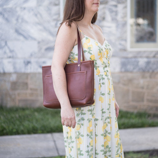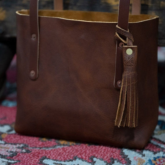 AVERY LEATHER TOTE BAG - SMALL - SADDLE