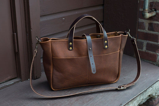 AVERY LEATHER TOTE BAG - MINI CROSSBODY - SADDLE