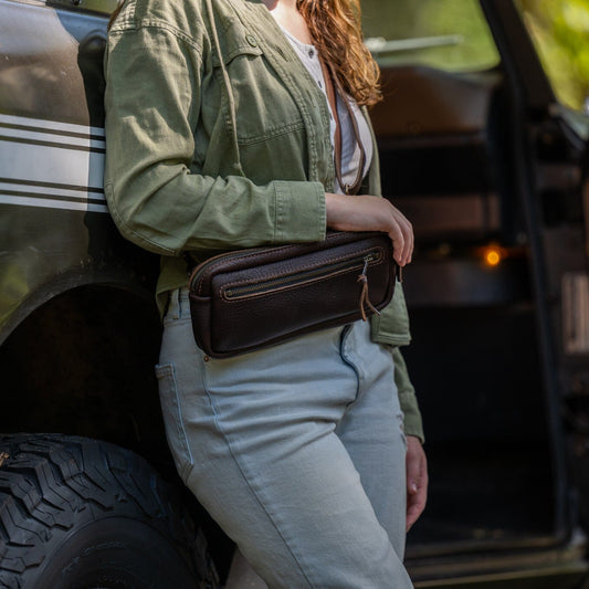 LEATHER FANNY PACK / LEATHER WAIST BAG - DELUXE - JADE BISON
