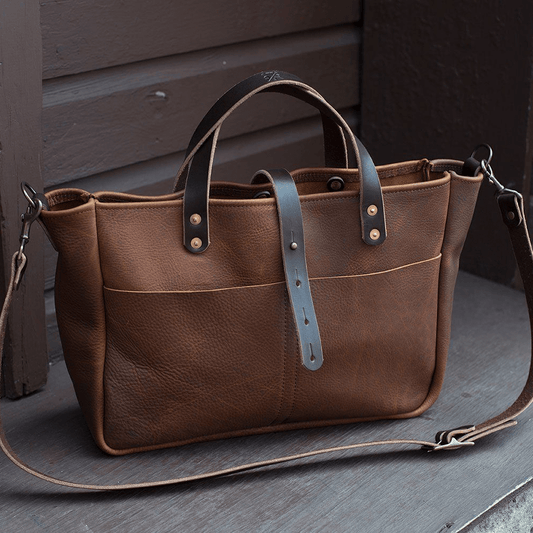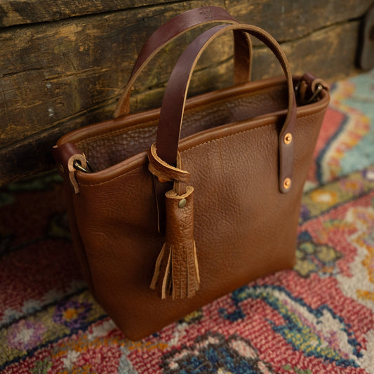 AVERY LEATHER TOTE BAG - MINI CROSSBODY - SADDLE