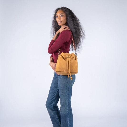 ABBY LEATHER BUCKET BAG - DESERT SUEDE