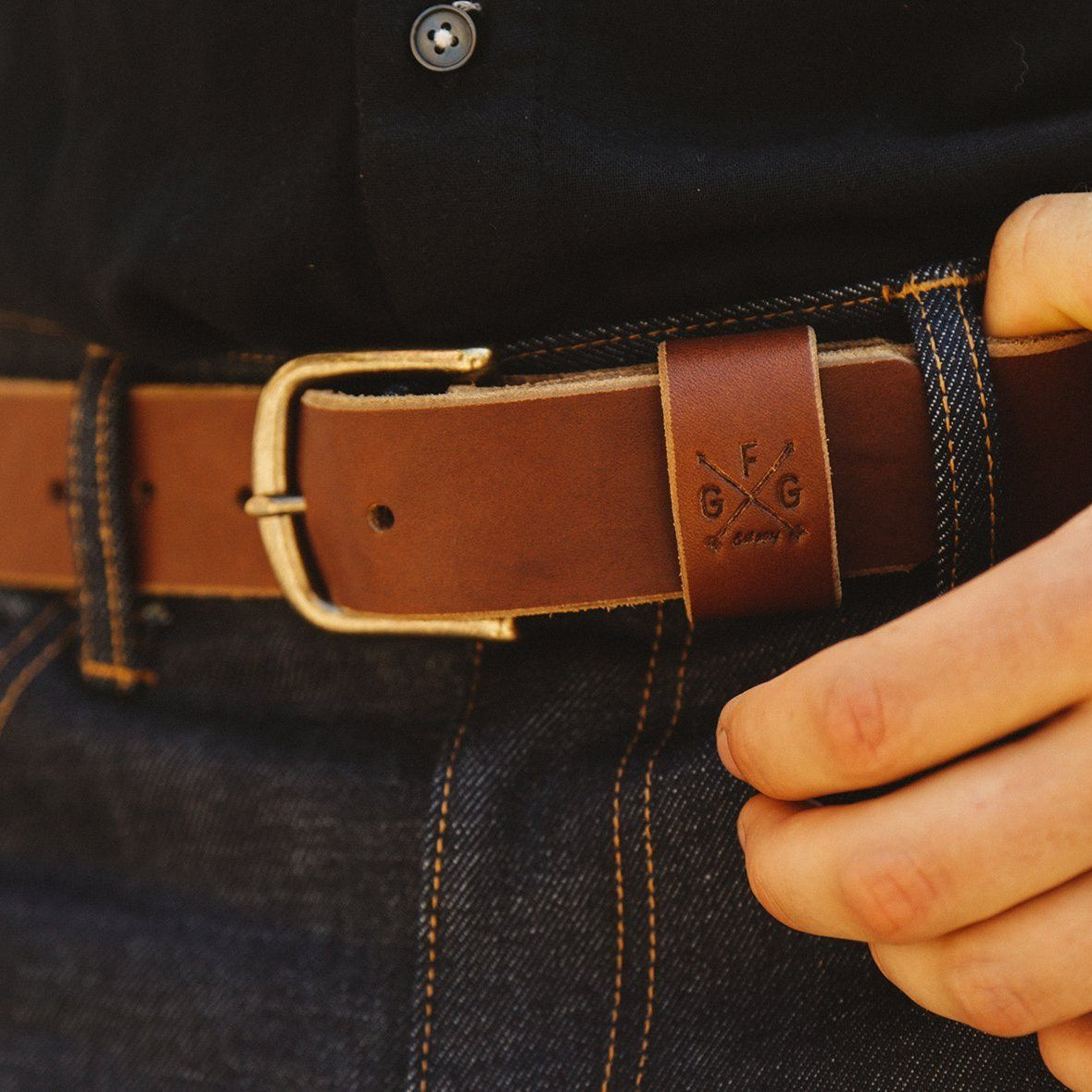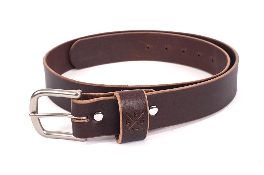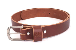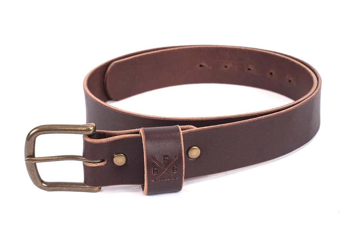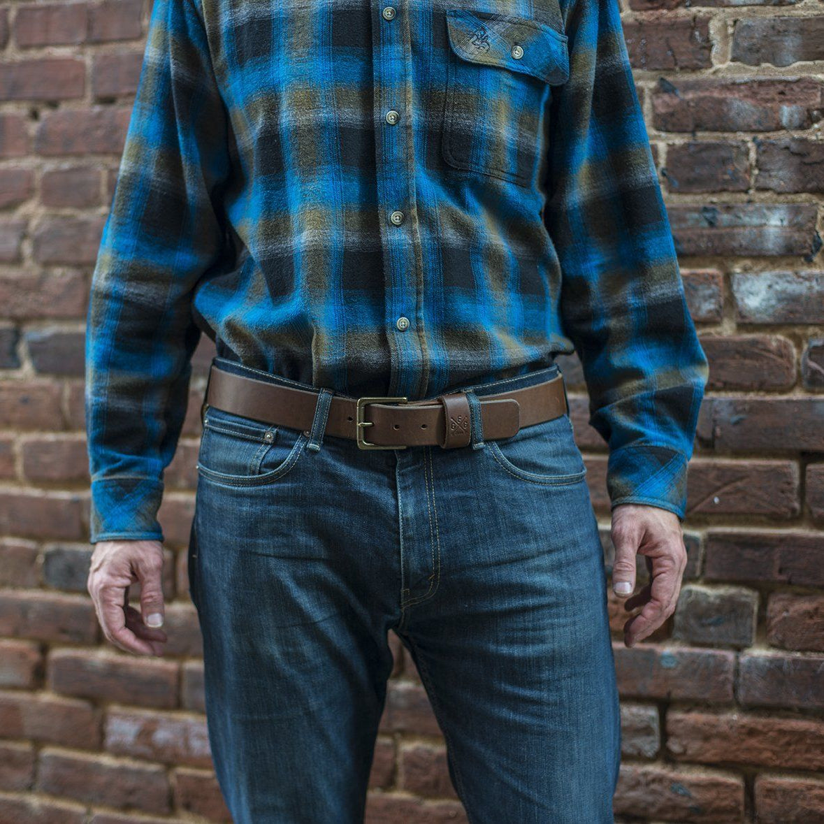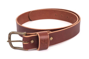Handcrafted from start to finish. Our Classic Leather Belt is 1.5" wide, cut from only the highest quality full-grain 10 oz leather and constructed with solid brass rivets and buckle.