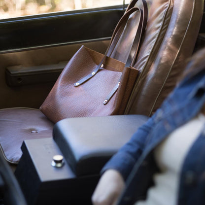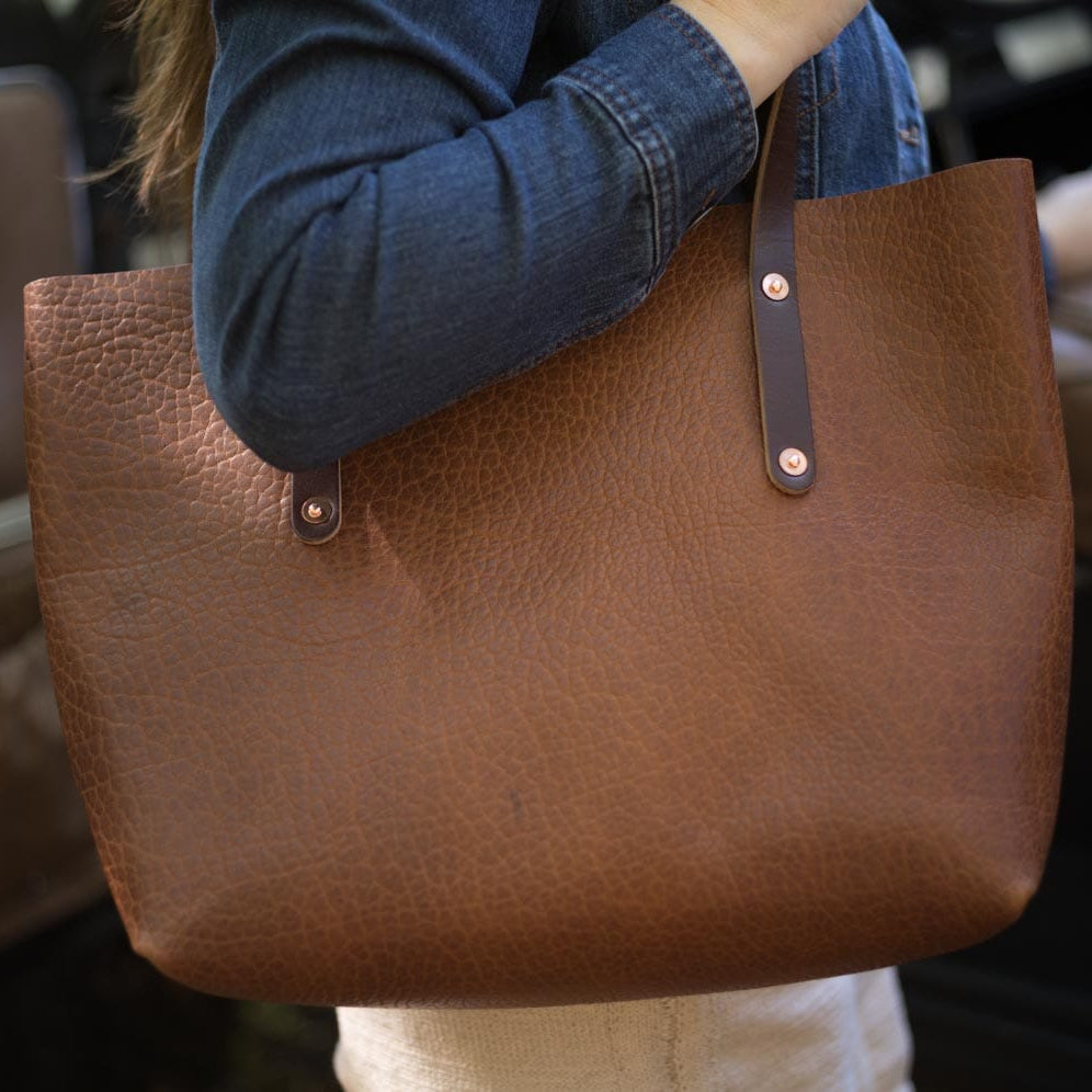We make our Avery Leather Tote Bag by hand in small batches with 100% full-grain 6 oz. American leather in our shop in Marietta, GA, and as always, it’s fully covered by our Lifetime Guarantee.