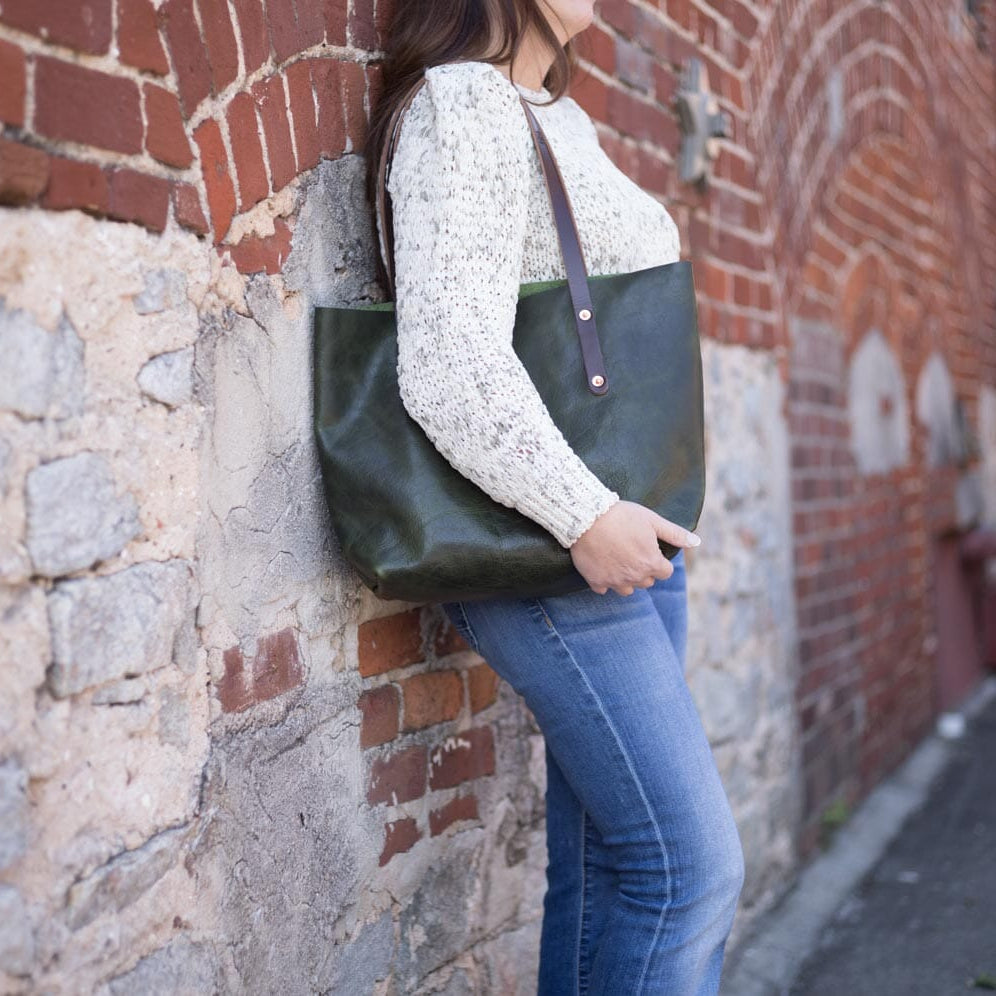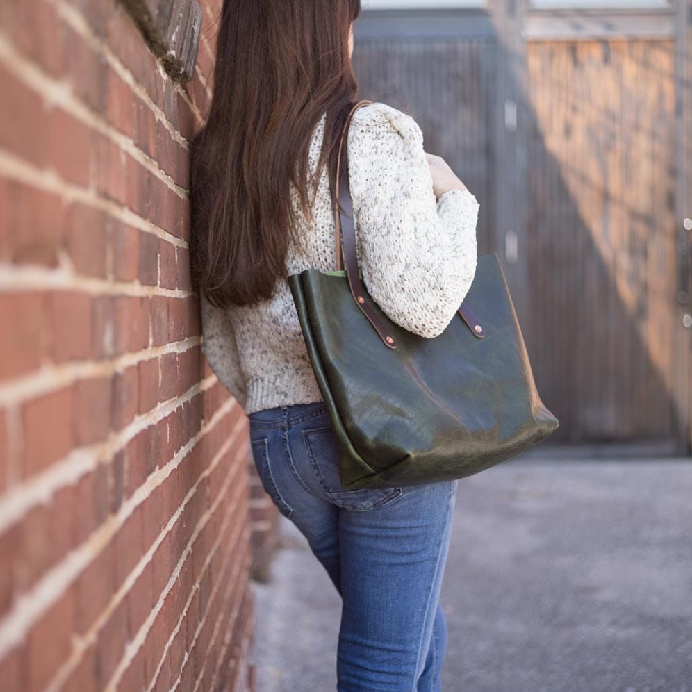 AVERY LEATHER TOTE BAG - MEDIUM - JADE BISON