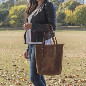 We make our Avery Leather Tote Bag by hand in small batches with 100% full-grain 6 oz. American leather in our shop in Marietta, GA, and as always, it’s fully covered by our Lifetime Guarantee.