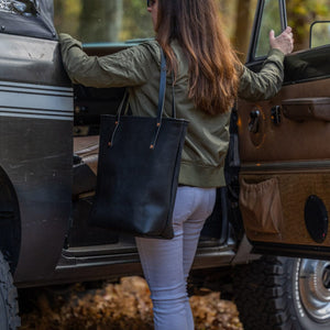 AVERY LEATHER TOTE BAG - SLIM LARGE - BLACK