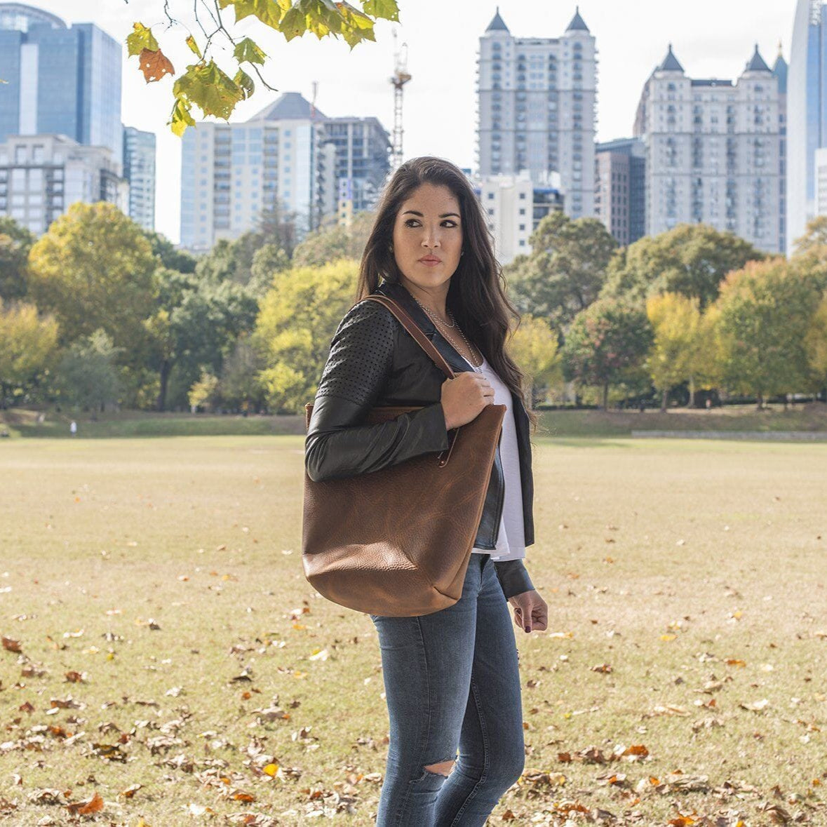 We make our Avery Leather Tote Bag by hand in small batches with 100% full-grain 6 oz. American leather in our shop in Marietta, GA, and as always, it’s fully covered by our Lifetime Guarantee.