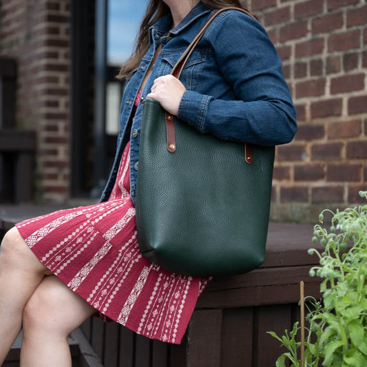 AVERY LEATHER TOTE BAG - SLIM MEDIUM - FOREST GREEN