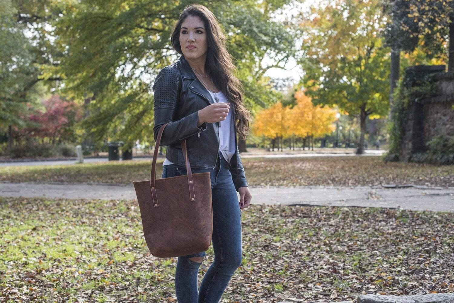 AVERY LEATHER TOTE BAG - SLIM MEDIUM - WHISKY BISON