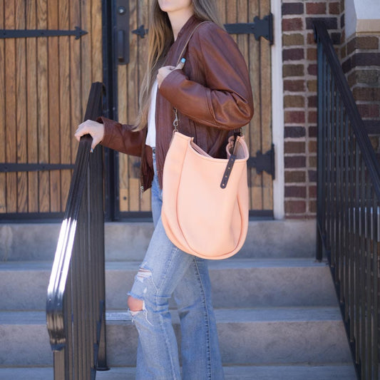 CELESTE LEATHER HOBO BAG - LARGE - PEACH FUZZ - IN STOCK
