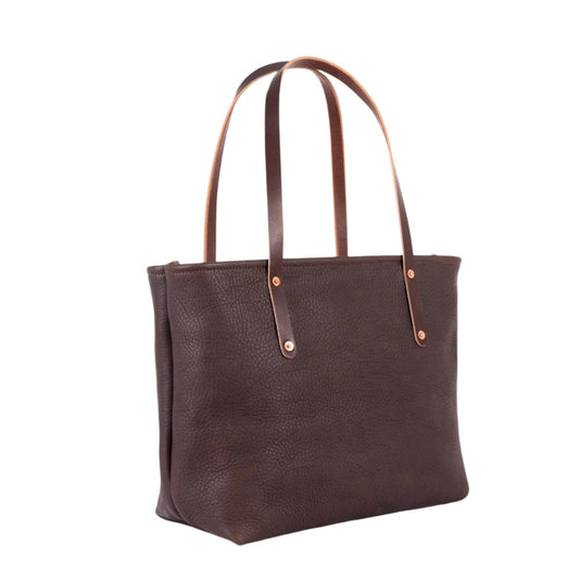 AVERY LEATHER TOTE BAG - LARGE - MOCHA WITH ZIPPER - IN STOCK