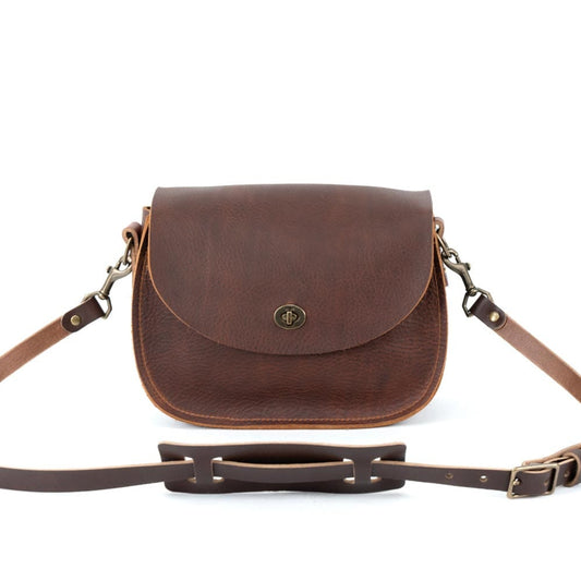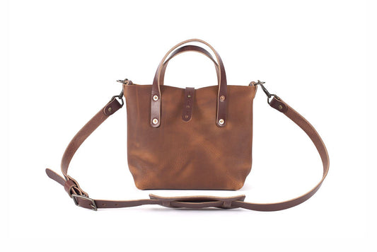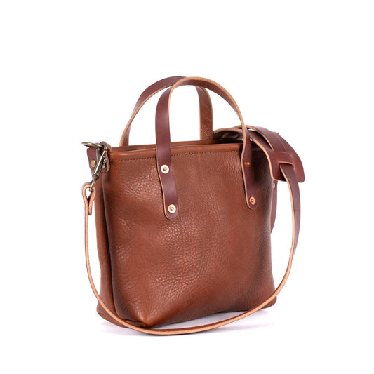 AVERY LEATHER TOTE BAG - MINI CROSSBODY - SADDLE WITH ZIPPER - IN STOCK