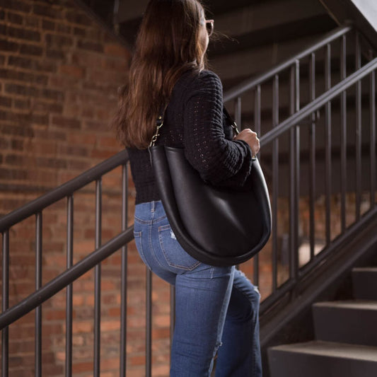 CELESTE LEATHER HOBO BAG - LARGE - BLACK