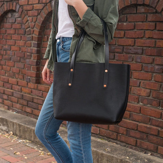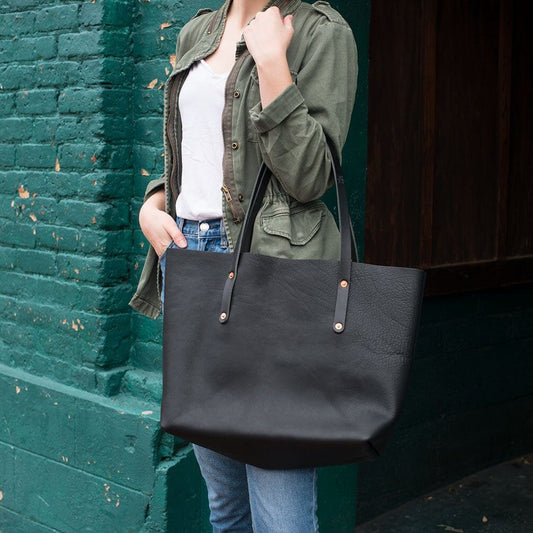 AVERY LEATHER TOTE BAG - LARGE - BLACK