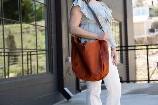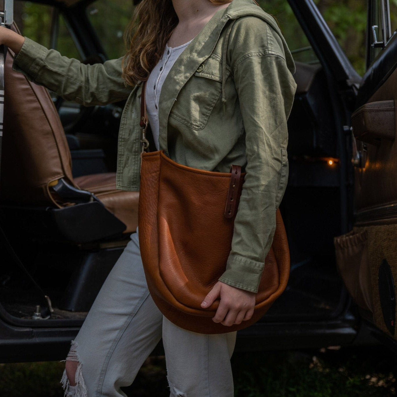 CELESTE LEATHER HOBO BAG - LARGE - NATURAL VEG TAN