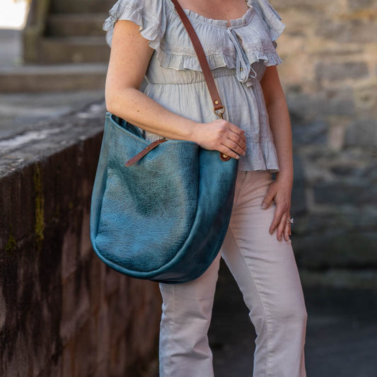 CELESTE LEATHER HOBO BAG - LARGE - COBALT BISON