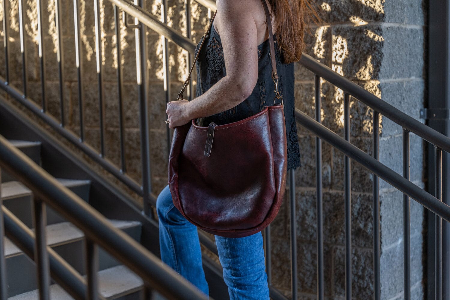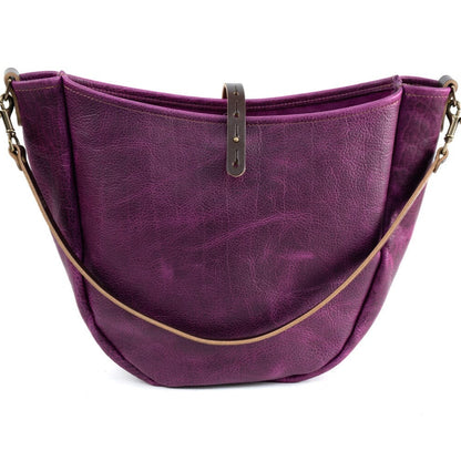 CELESTE LEATHER HOBO BAG - LARGE - GRAPE BISON
