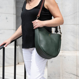 CELESTE LEATHER HOBO BAG - FOREST GREEN
