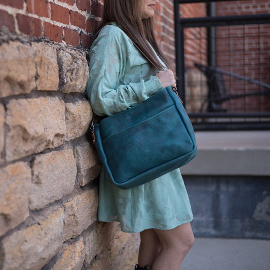 RENNIE LEATHER SHOULDER BAG - LARGE - COBALT BISON
