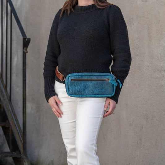 LEATHER FANNY PACK / LEATHER WAIST BAG - COBALT BISON
