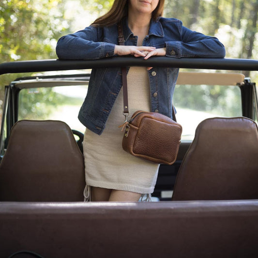 HOFFMAN LEATHER CROSSBODY BAG - MINI - COGNAC BISON