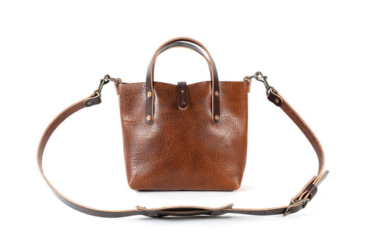 AVERY LEATHER TOTE BAG - MINI CROSSBODY - COGNAC BISON