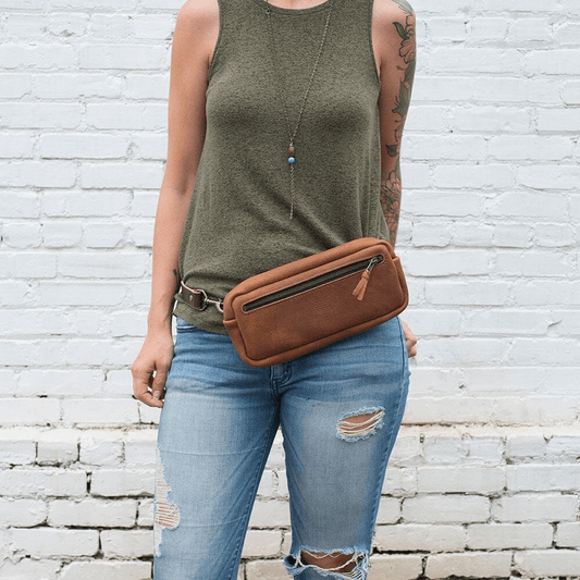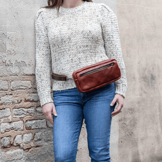 LEATHER FANNY PACK / LEATHER WAIST BAG - REDWOOD BISON