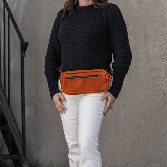LEATHER FANNY PACK / LEATHER WAIST BAG - TANGERINE BISON