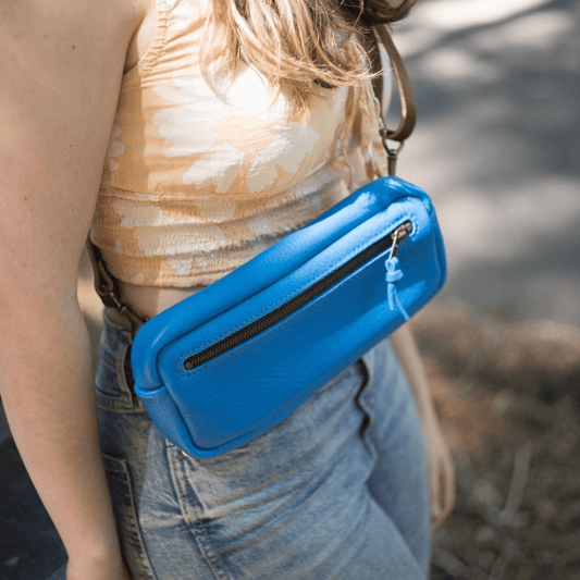LEATHER FANNY PACK / LEATHER WAIST BAG - OCEAN BLUE