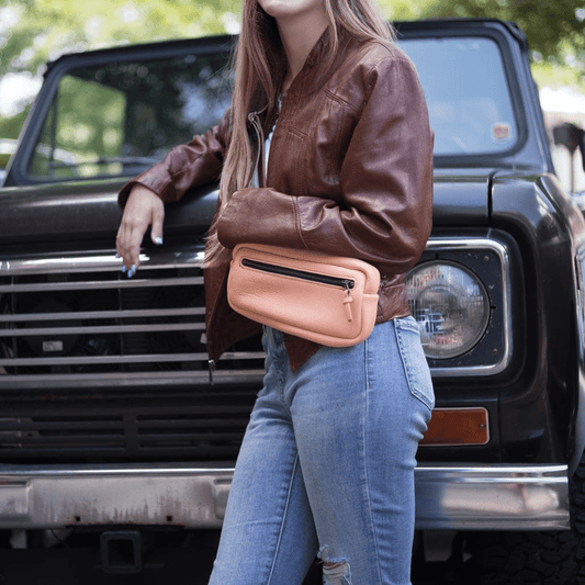 LEATHER FANNY PACK / LEATHER WAIST BAG - PEACH FUZZ