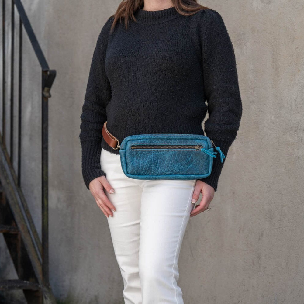 LEATHER FANNY PACK / LEATHER WAIST BAG - DELUXE - COBALT BISON