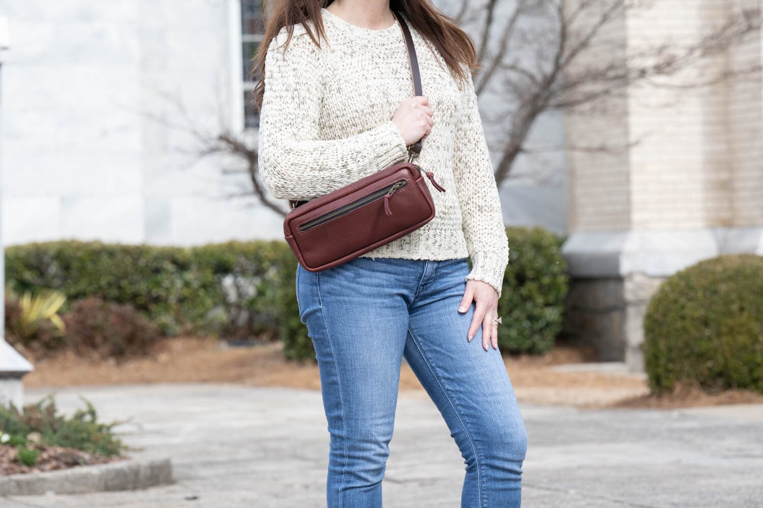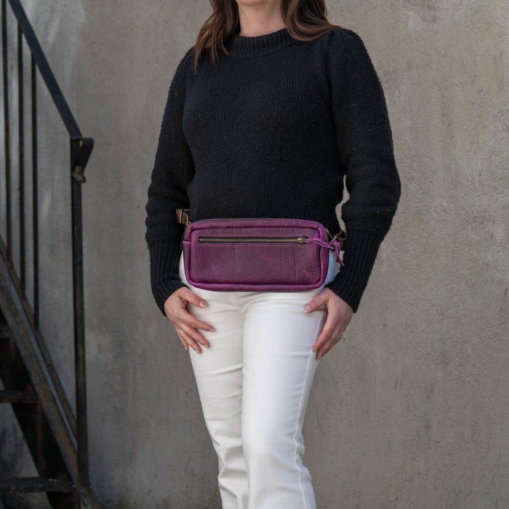 LEATHER FANNY PACK / LEATHER WAIST BAG - DELUXE - GRAPE BISON