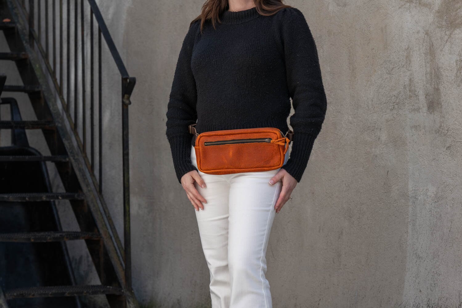 LEATHER FANNY PACK / LEATHER WAIST BAG - DELUXE - WHISKY BISON