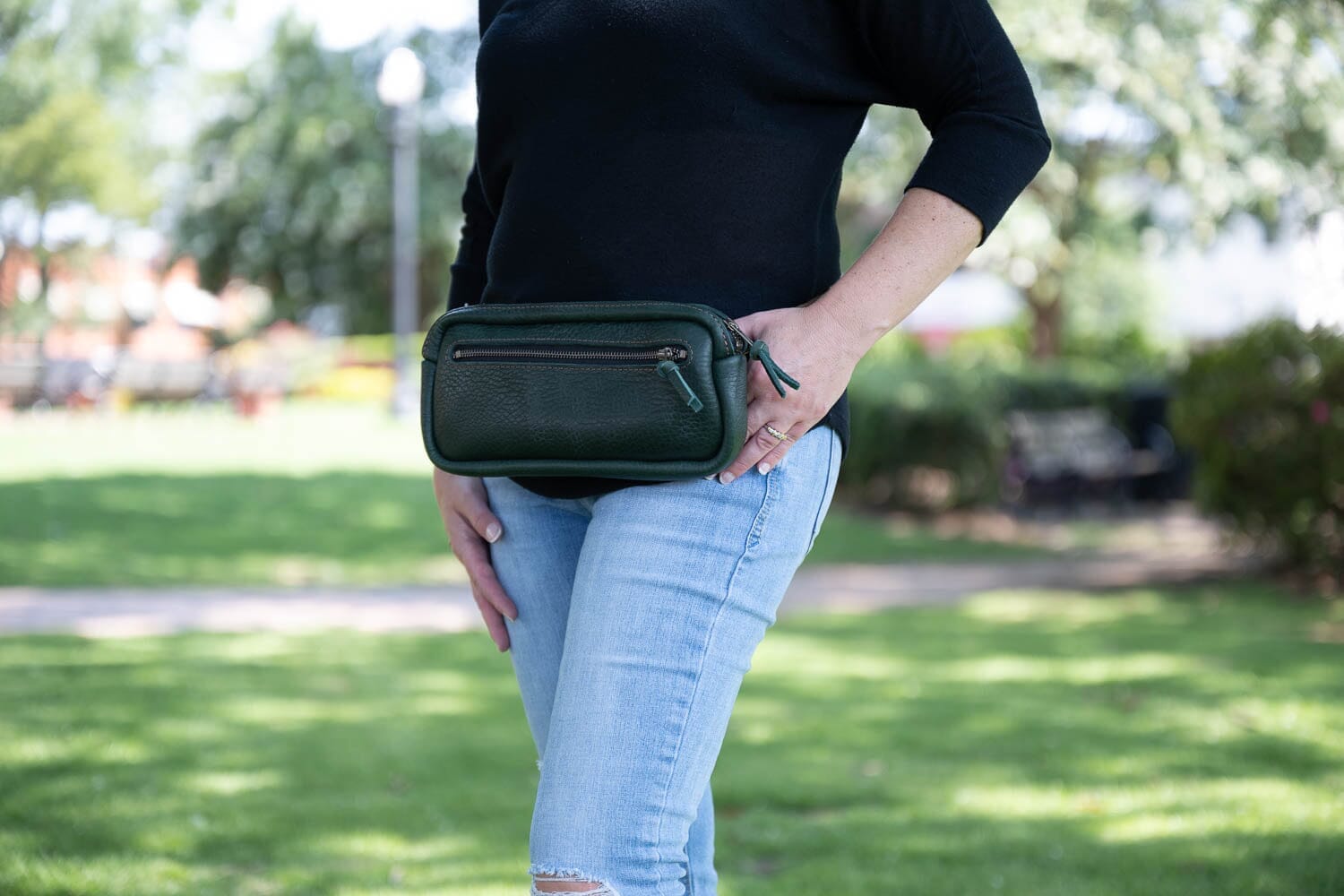 LEATHER FANNY PACK / LEATHER WAIST BAG - DELUXE - FOREST GREEN