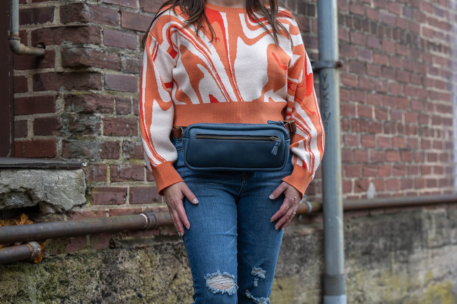 LEATHER FANNY PACK / LEATHER WAIST BAG - DELUXE - SMOKEY BLUE