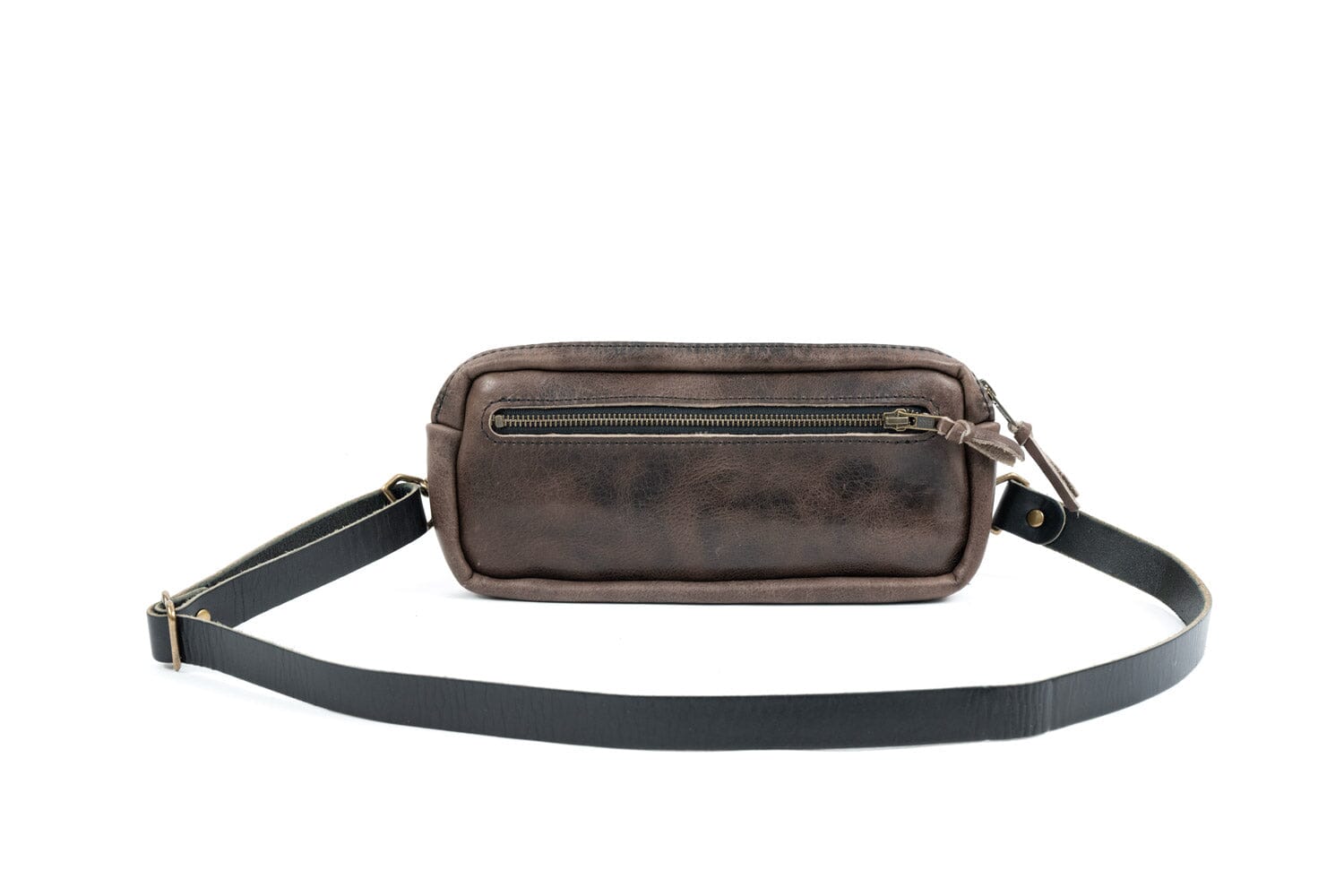 LEATHER FANNY PACK / LEATHER WAIST BAG - DELUXE - BLACK BISON