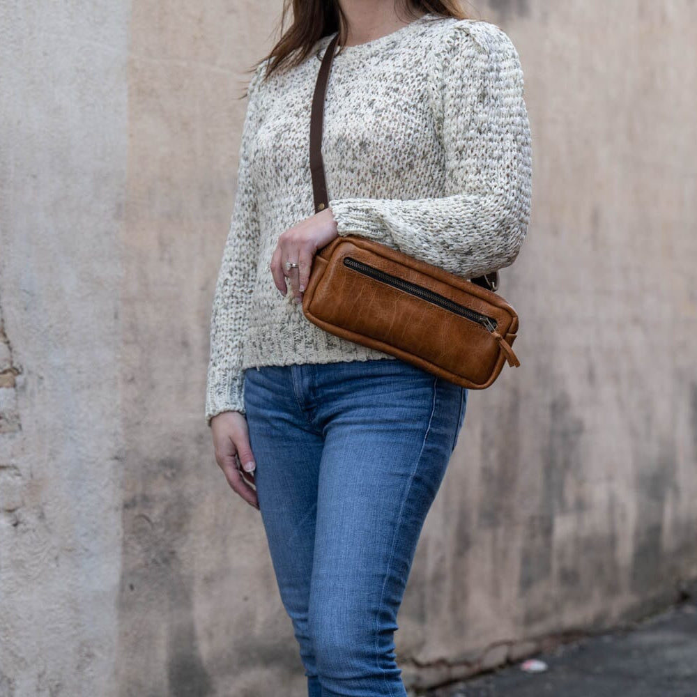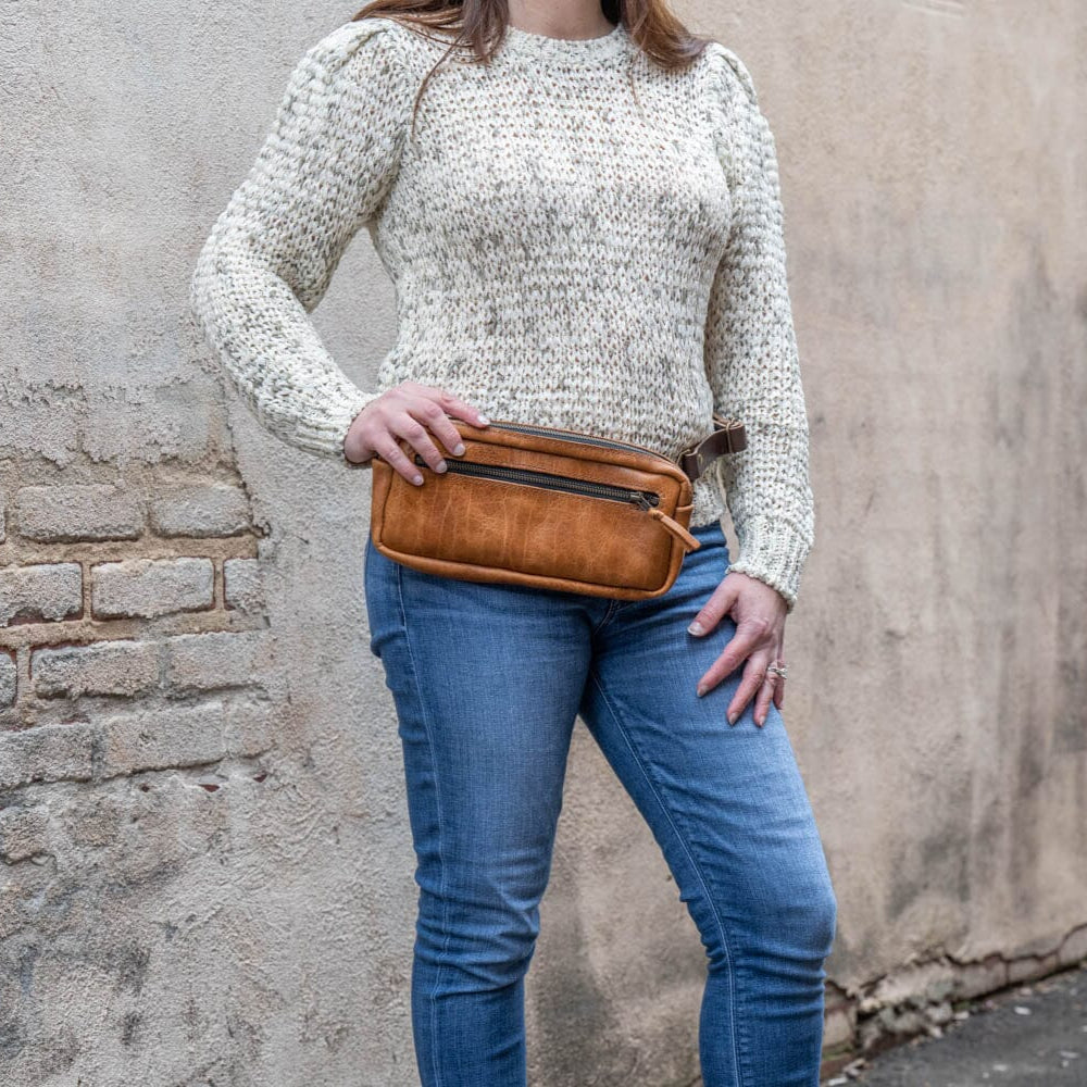 LEATHER FANNY PACK / LEATHER WAIST BAG - DELUXE - PEANUT BISON