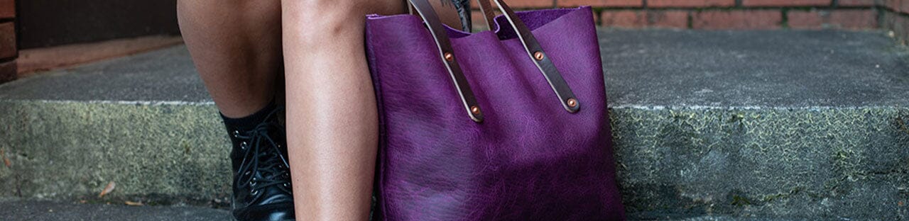 AVERY LEATHER TOTE BAG - SMALL - GRAPE BISON