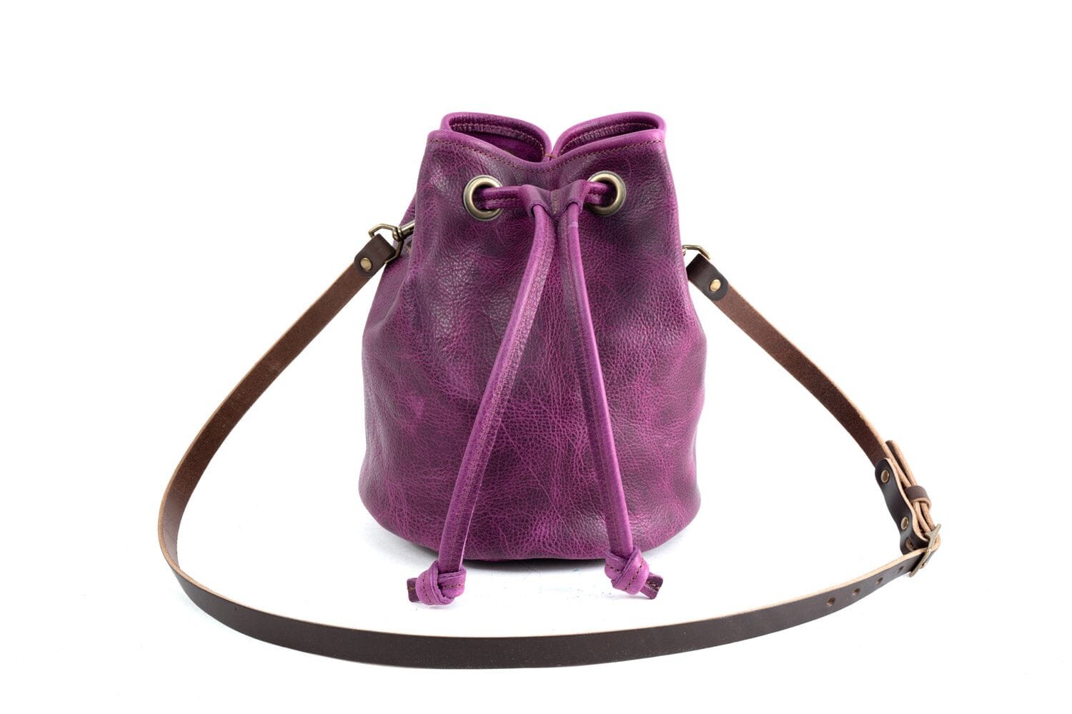 ABBY LEATHER BUCKET BAG - GRAPE BISON