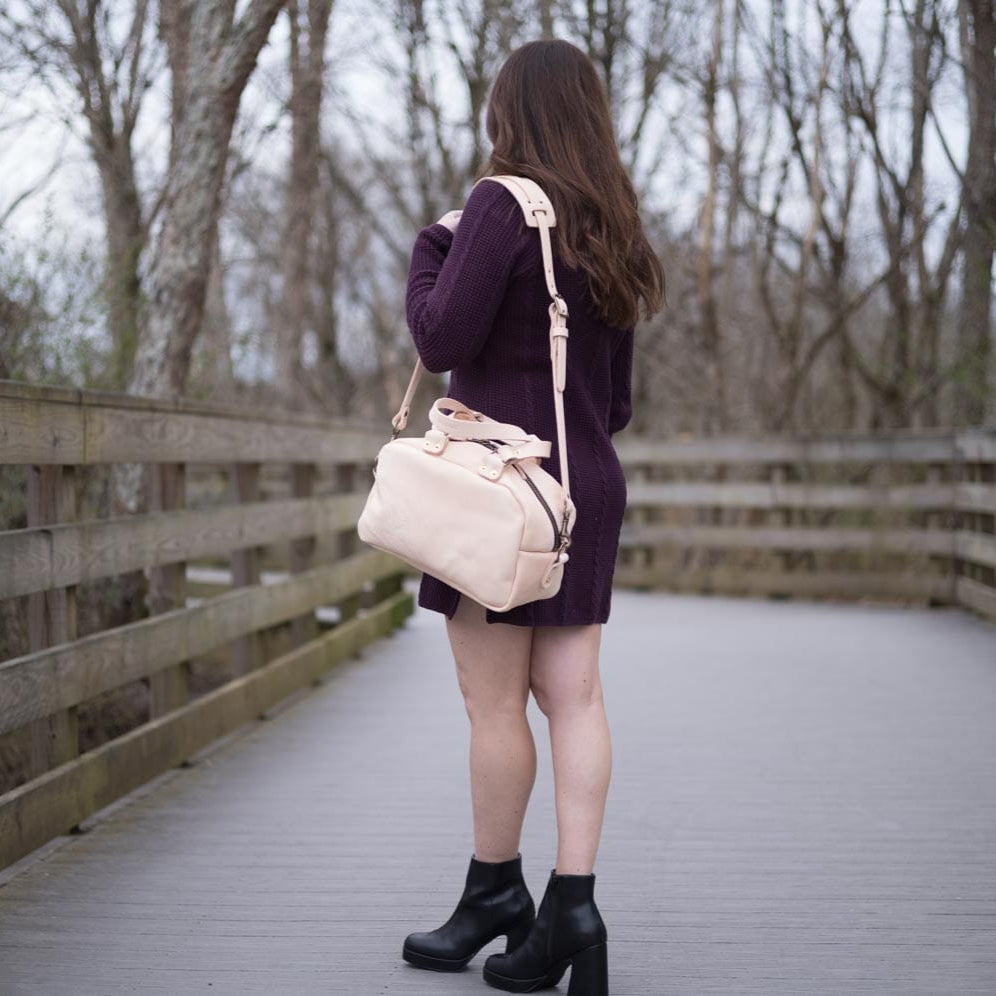 A smaller version of the Hoffman Weekender Duffle. Inspired by a 100-year-old leather gym bag carried by Mr Hoffman the Grandfather of a customer we made the first bag for. This compact, full-grain leather crossbody bag is made to last. Large enough to carry all your daily essentials and small enough to be a daily carry bag. Comes with d-rings and adjustable and removable 3/4" wide shoulder strap.