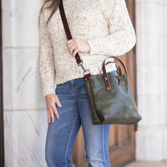 AVERY LEATHER TOTE BAG - MINI CROSSBODY - JADE BISON