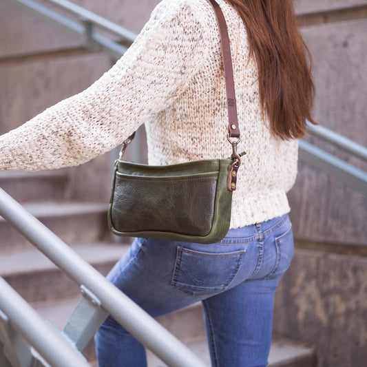 HOFFMAN LEATHER CROSSBODY BAG - JADE BISON