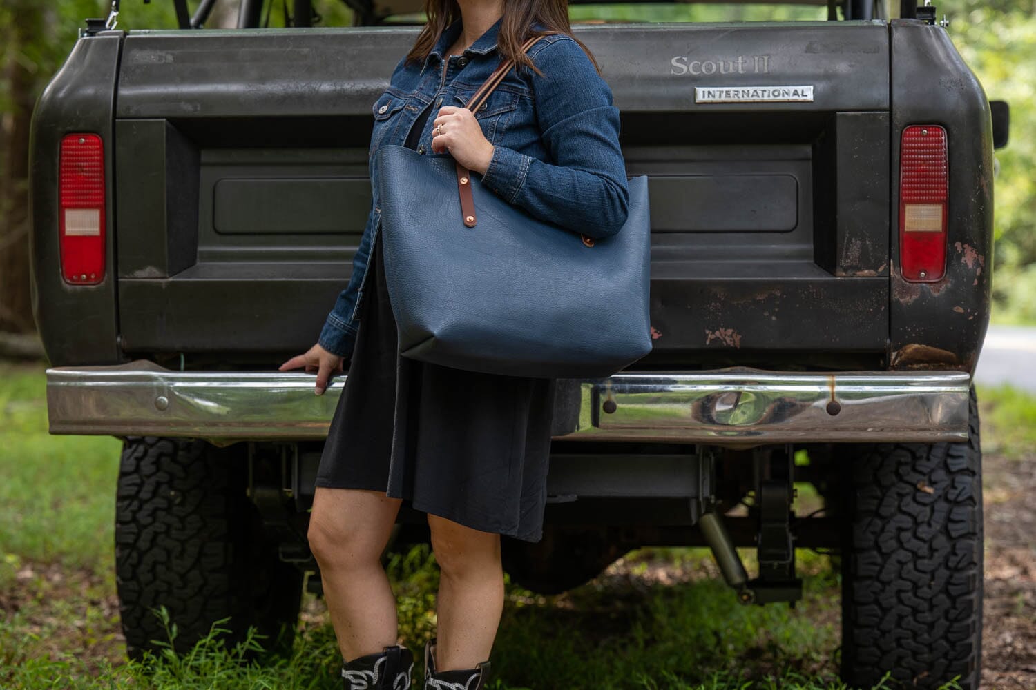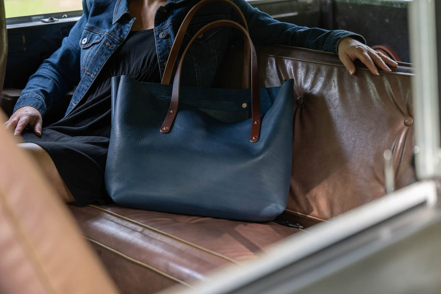 AVERY LEATHER TOTE BAG - LARGE - SMOKEY BLUE