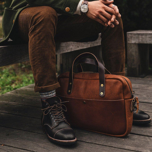 MARTIN THIN LEATHER BRIEFCASE - DARK SADDLE - IN STOCK