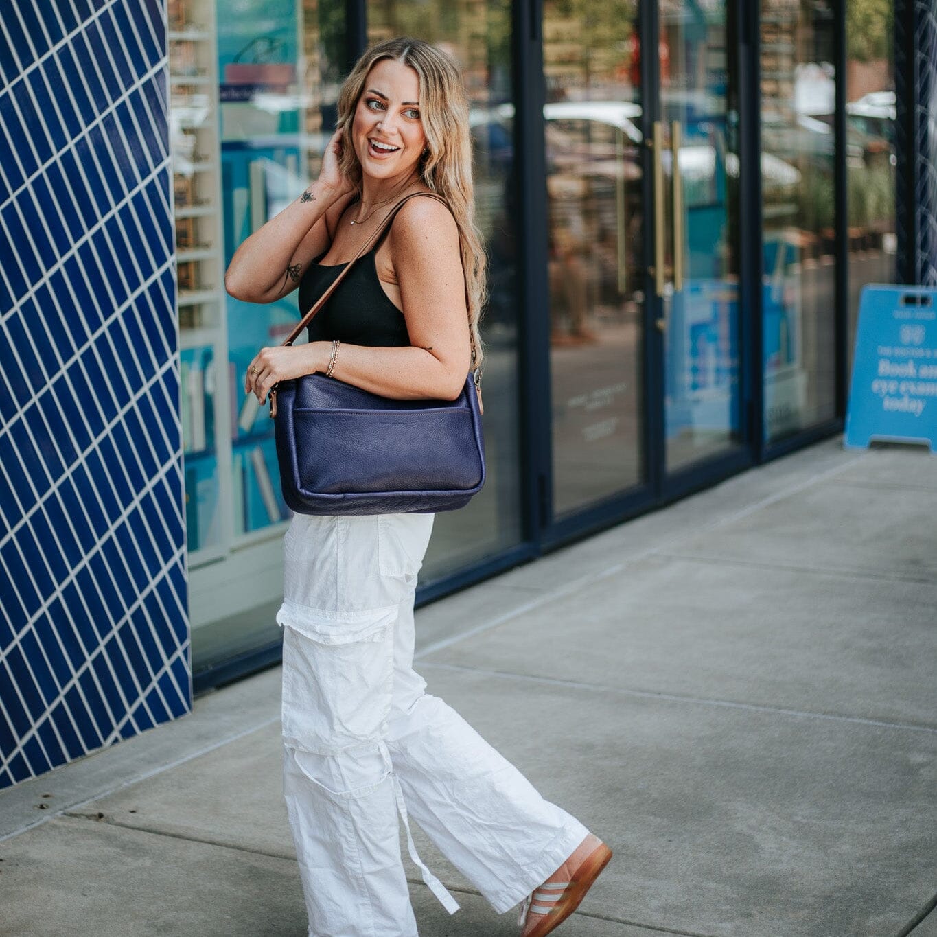 A perfect choice for your every day carry, the Rennie Leather Shoulder Bag in the medium size, is a testament to timeless elegance and exceptional craftsmanship. Meticulously handmade in Marietta, GA, this classic leather shoulder bag merges sophistication with functionality.