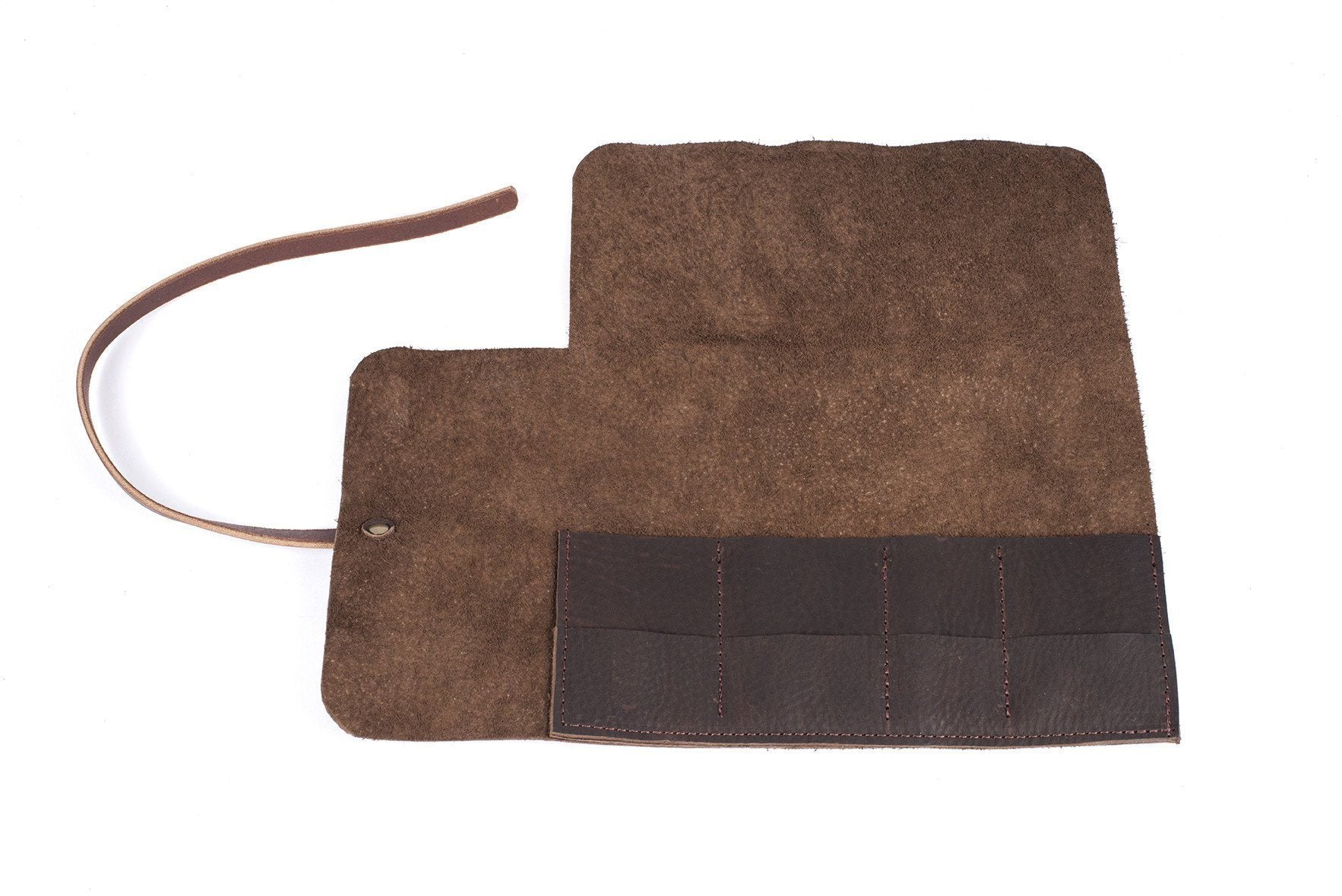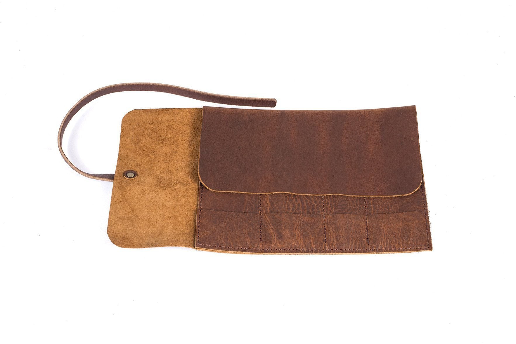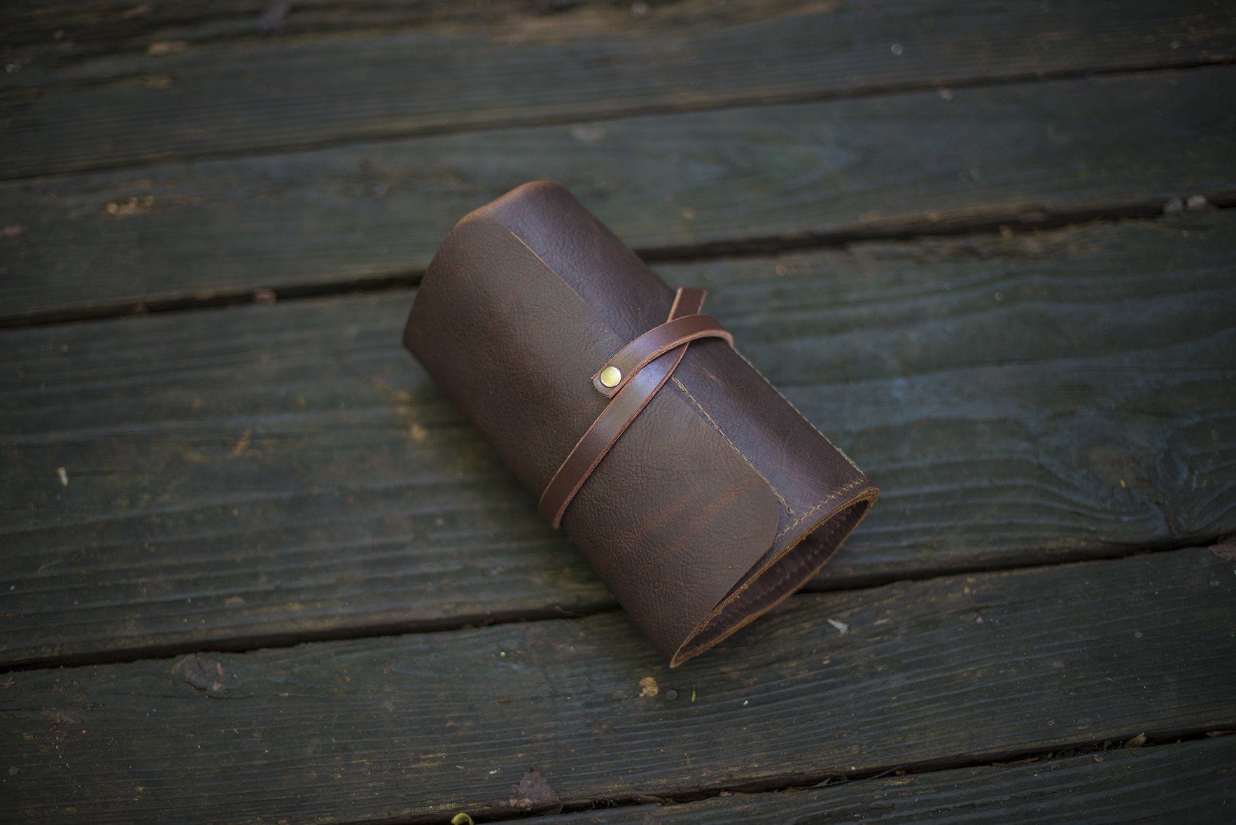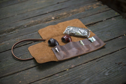 Holds standard size tools like screwdrivers, wrench, etc. Or 2 standard size pipes, your tools, lighter and tobacco, all in one convenient leather roll.