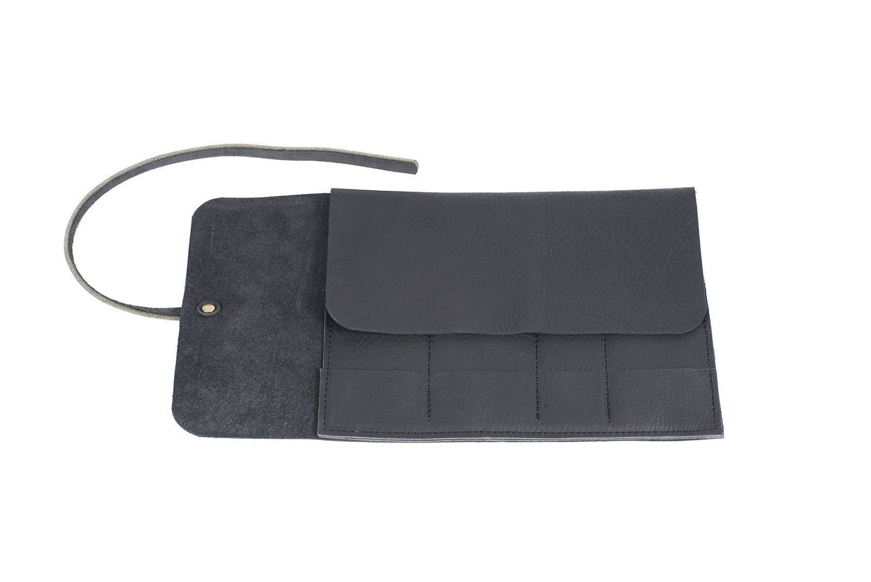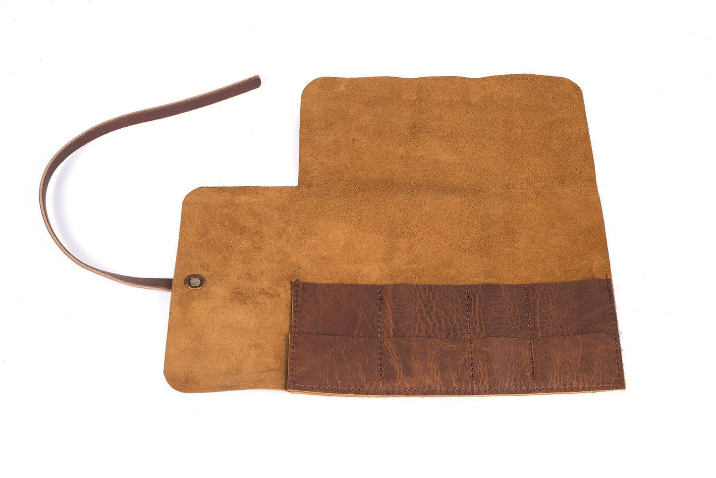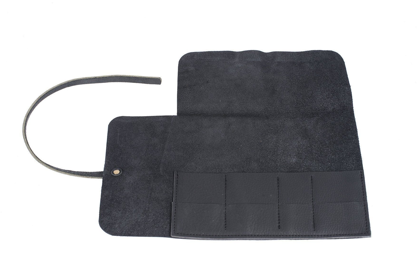 Holds standard size tools like screwdrivers, wrench, etc. Or 2 standard size pipes, your tools, lighter and tobacco, all in one convenient leather roll.