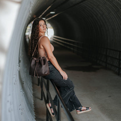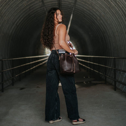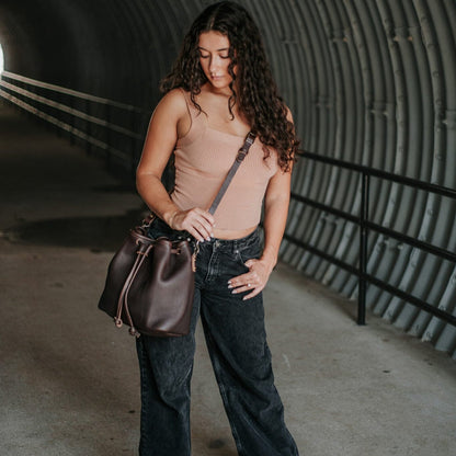 ABBY LEATHER BUCKET BAG - MOCHA