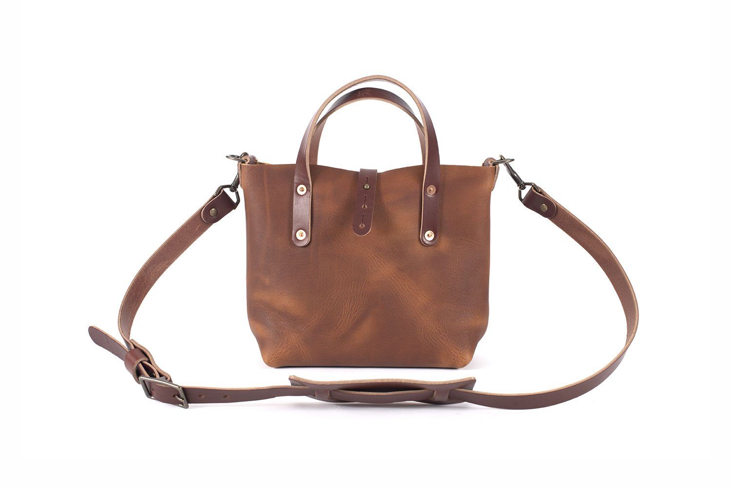 AVERY LEATHER TOTE BAG - MINI CROSSBODY - SADDLE