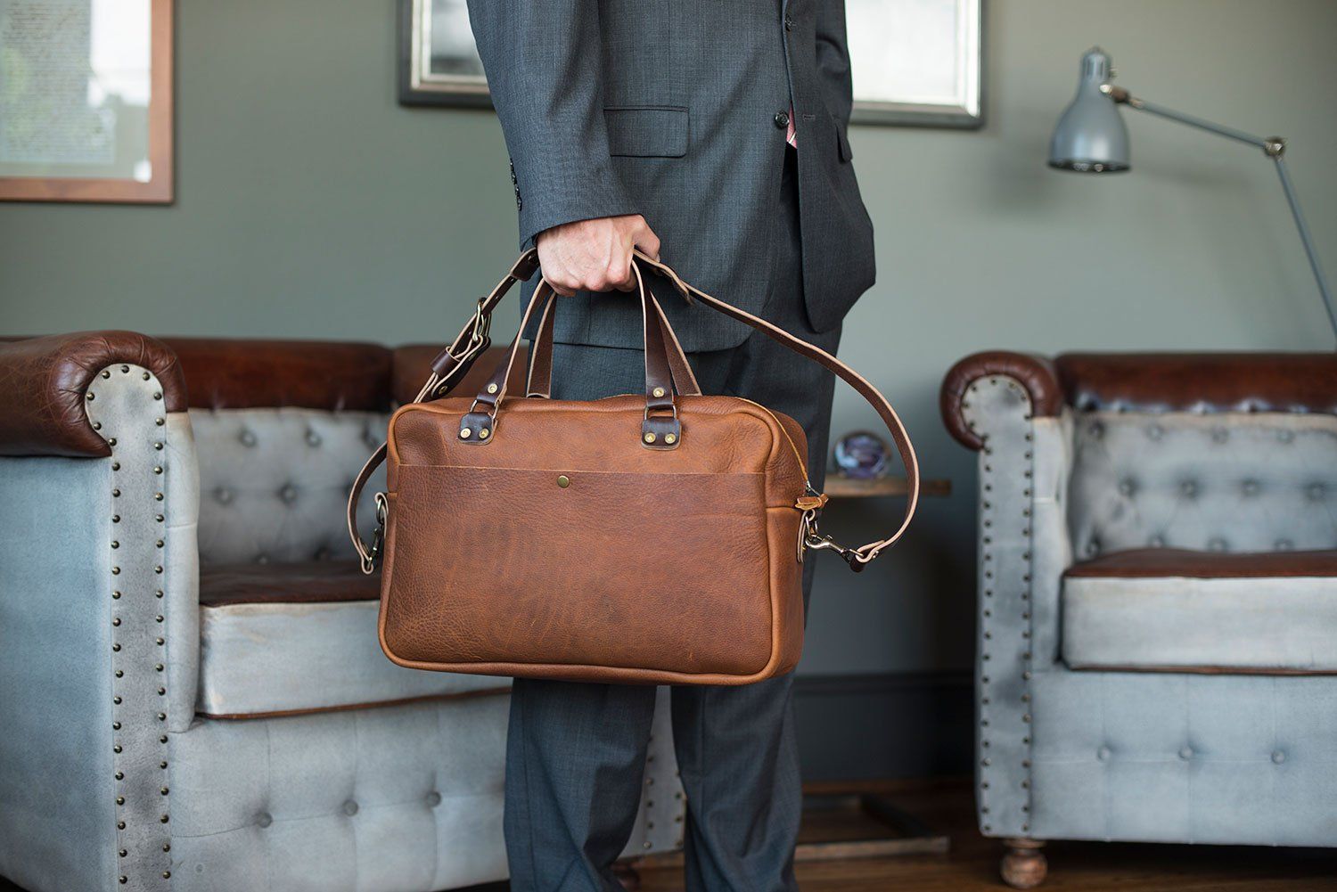 GUNNAR ZIPPERED LEATHER DUFFLE BAG - MILITARY STYLE DUFFLE BAG